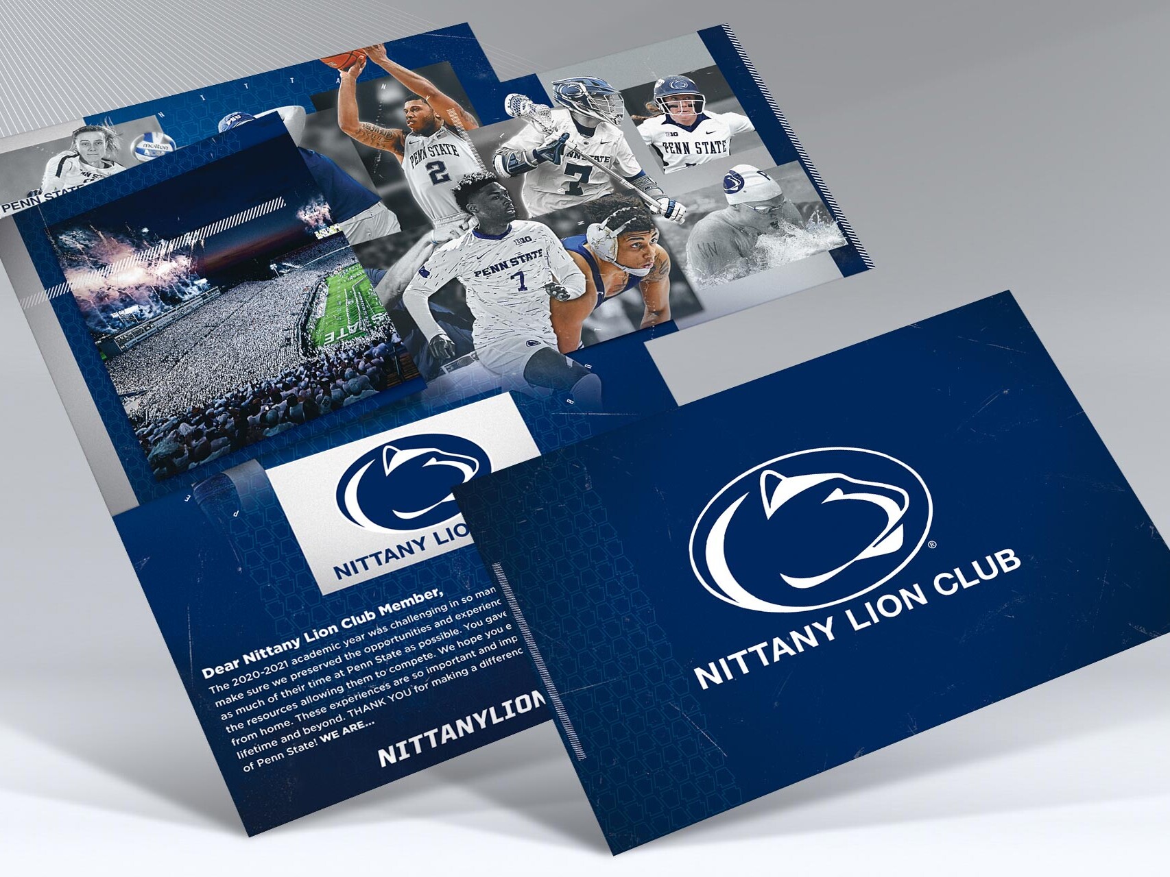Client:Nittany Lion ClubInstitution: Penn State UniversityYear:2021Classification:Athletic developmentFormat:6X9 Gatefold mailerComponent 1:Variable memer cardComponent 2:DIE-CUT car magnetComponent 3:Member decal